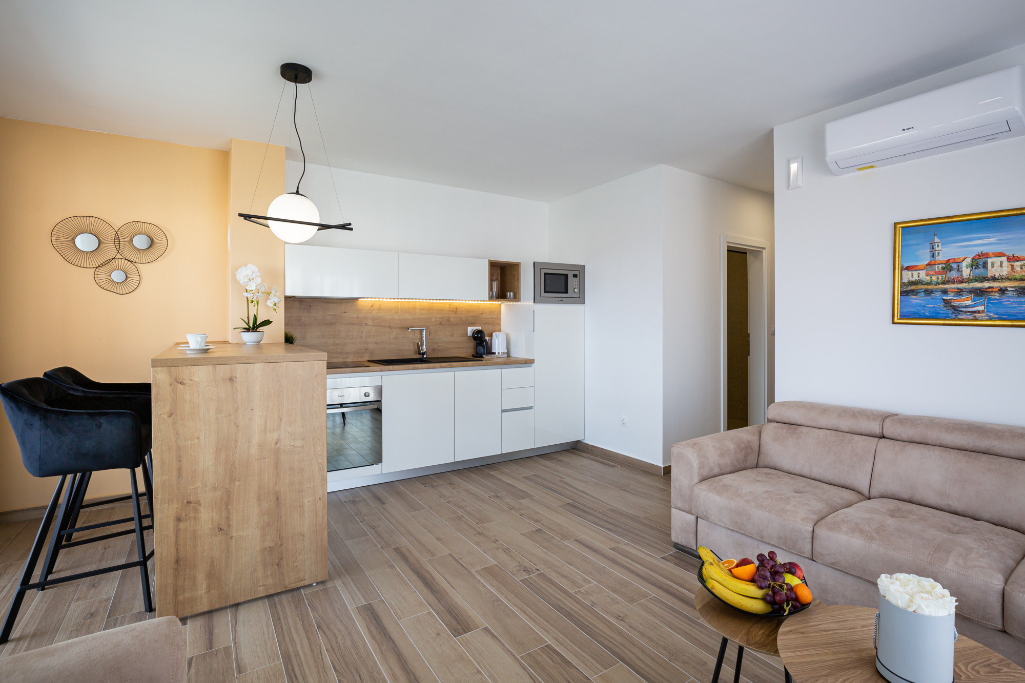Prostire se na 70 m2, a prima do 6 gostiju. Privatni ulaz te dvije kupaonice ga čine našim najatraktivnijim apartmanom.