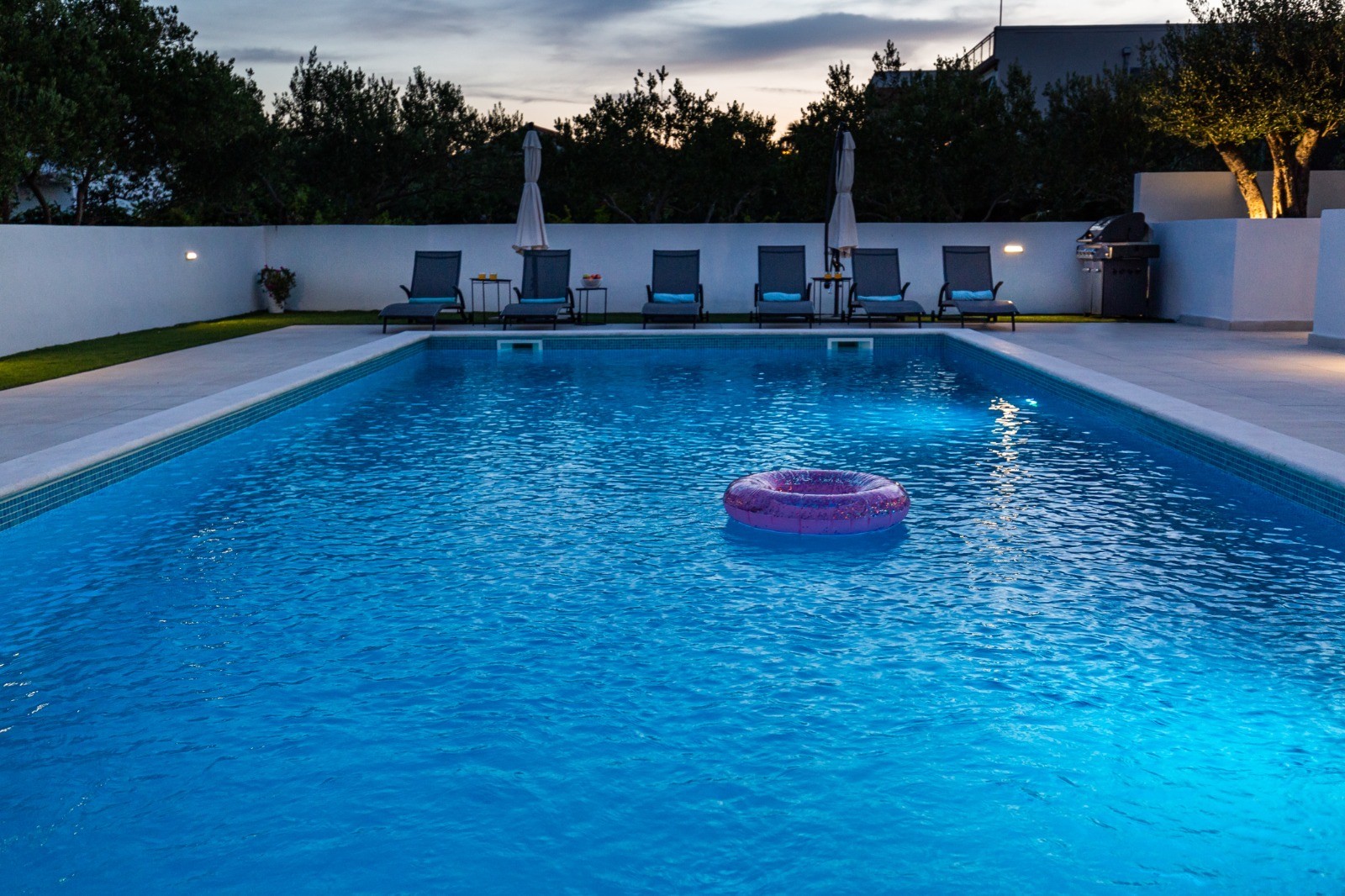 Uživajte u velikom vanjskom bazenu zajedno s terasom za sunčanje i opremom za roštilj.